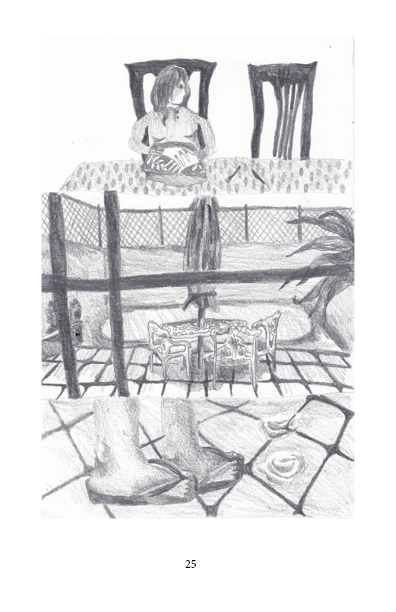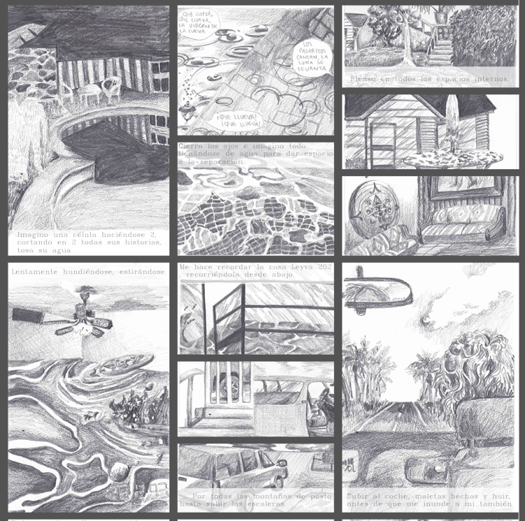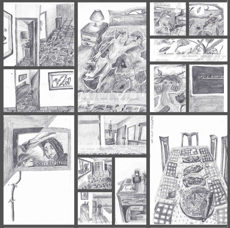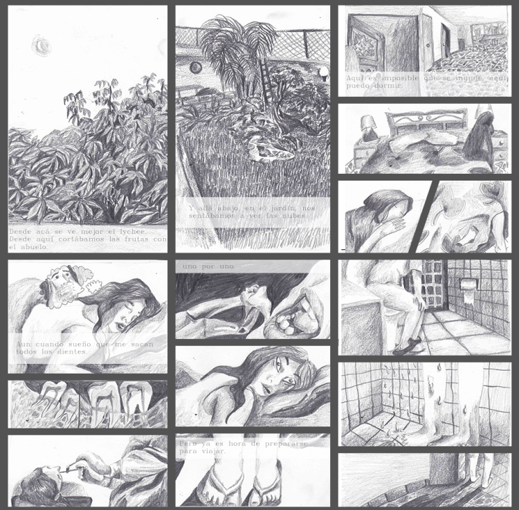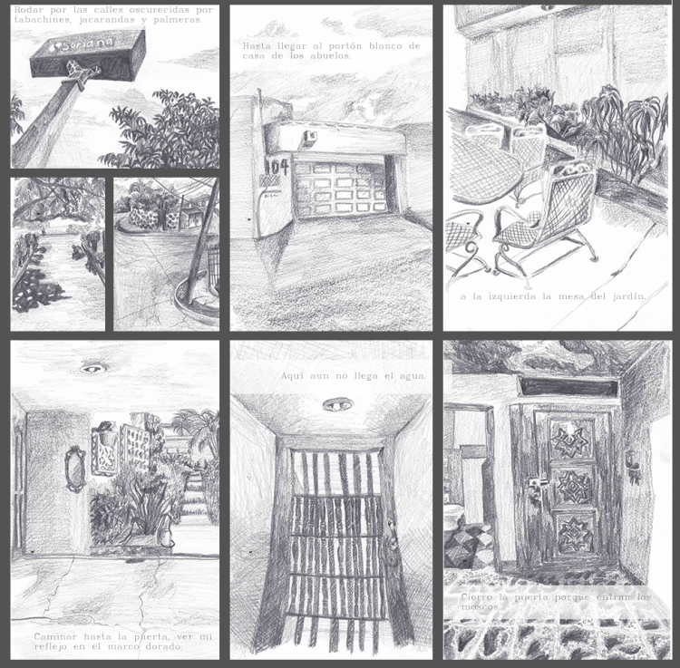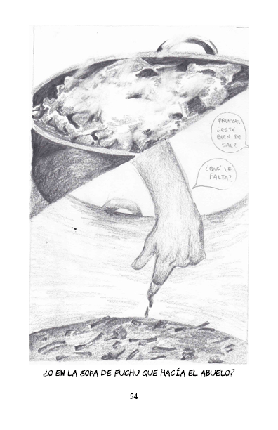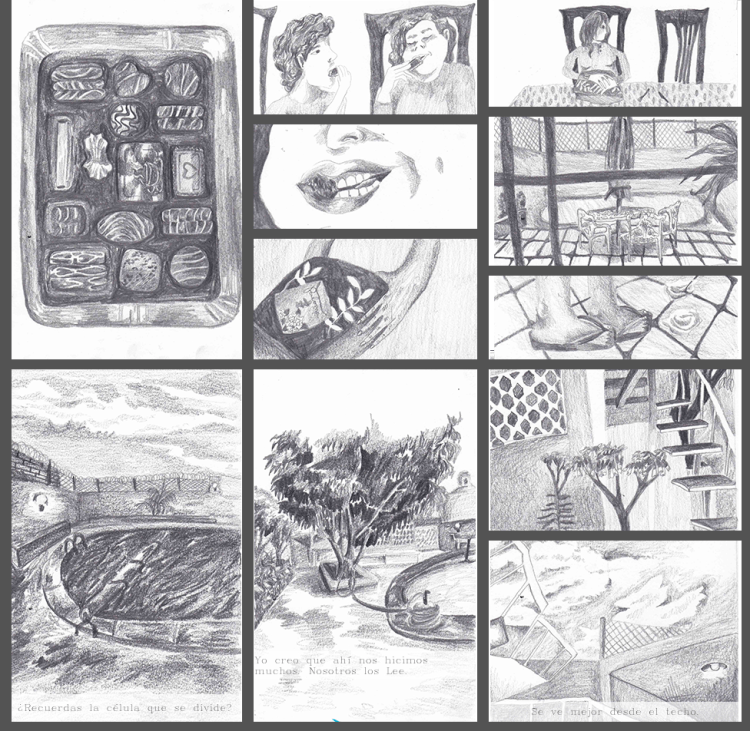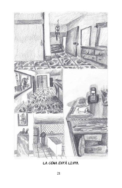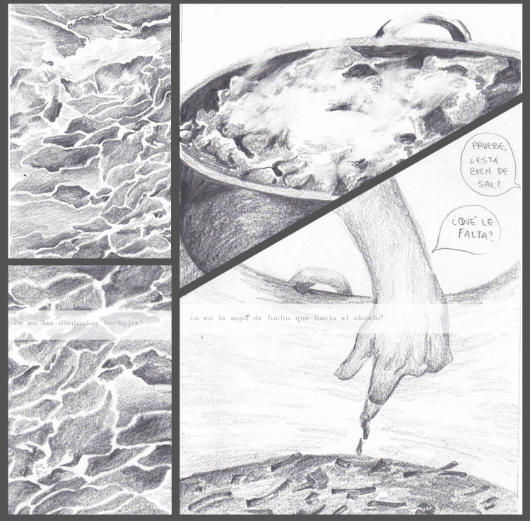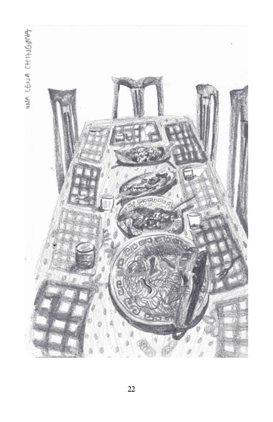 «Casa de los abuelos» es una serie de 50 dibujos en donde regreso visualmente a casa de mis abuelos y dibujo cada detalle que me es importante, y analizo la relación de los objetos de esa casa con mi propia construcción como persona, mis recuerdos, y la importancia de la mesa del comedor para las reuniones que ahí se hacían. Estos dibujos vinculan el proceso de construcción de mi persona como descendiente de migrantes chino-cantoneses como mi abuelo, y su reflejo en objetos de la casa y en la comida, así como las dinámicas familiares de la fiesta.