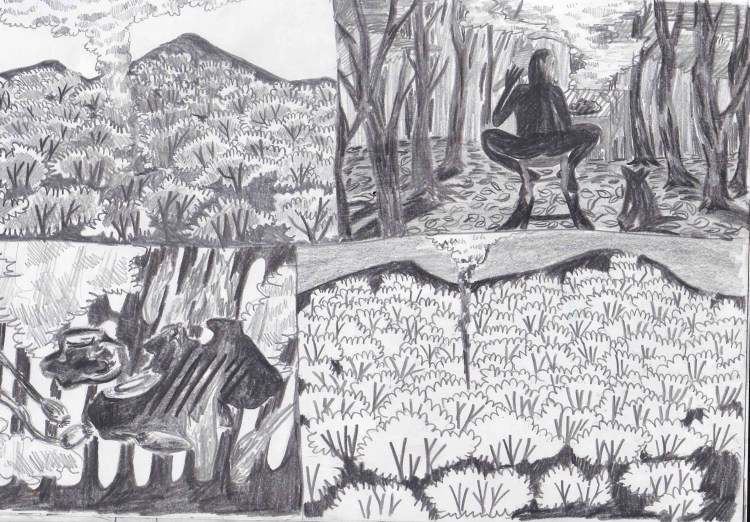 Historias del bosque, 2021. Tamaño carta. 6 piezas. + boceto storyboard.