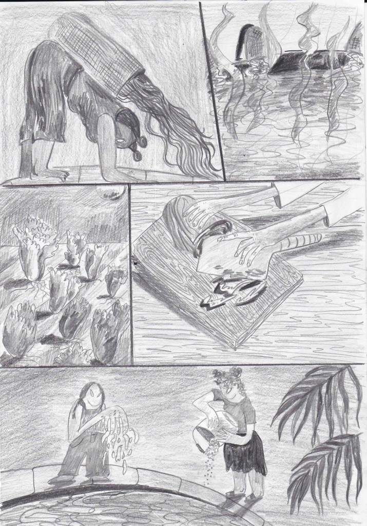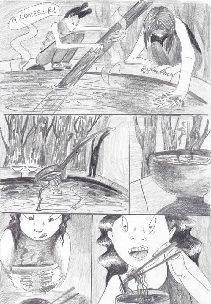 «La sopa» es un cómic que parte de un sueño que tuve de mi abuela convertida en y de cómo convertíamos la alberca en una sopa china gigante para una reunión familiar.