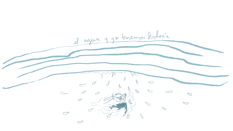 Serie de dibujos digitales que combinan texto e imagen en torno a la reflexión de mi relación con el agua desde diferentes ángulos.