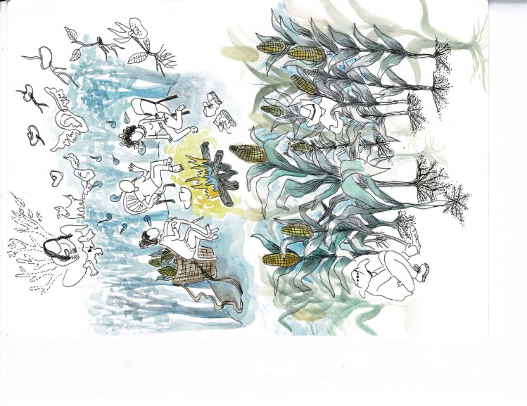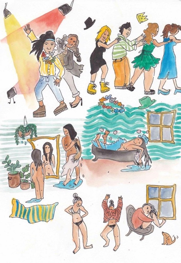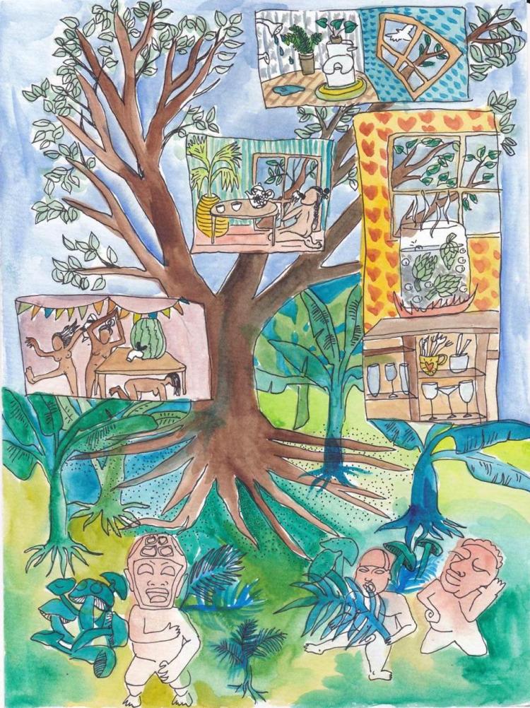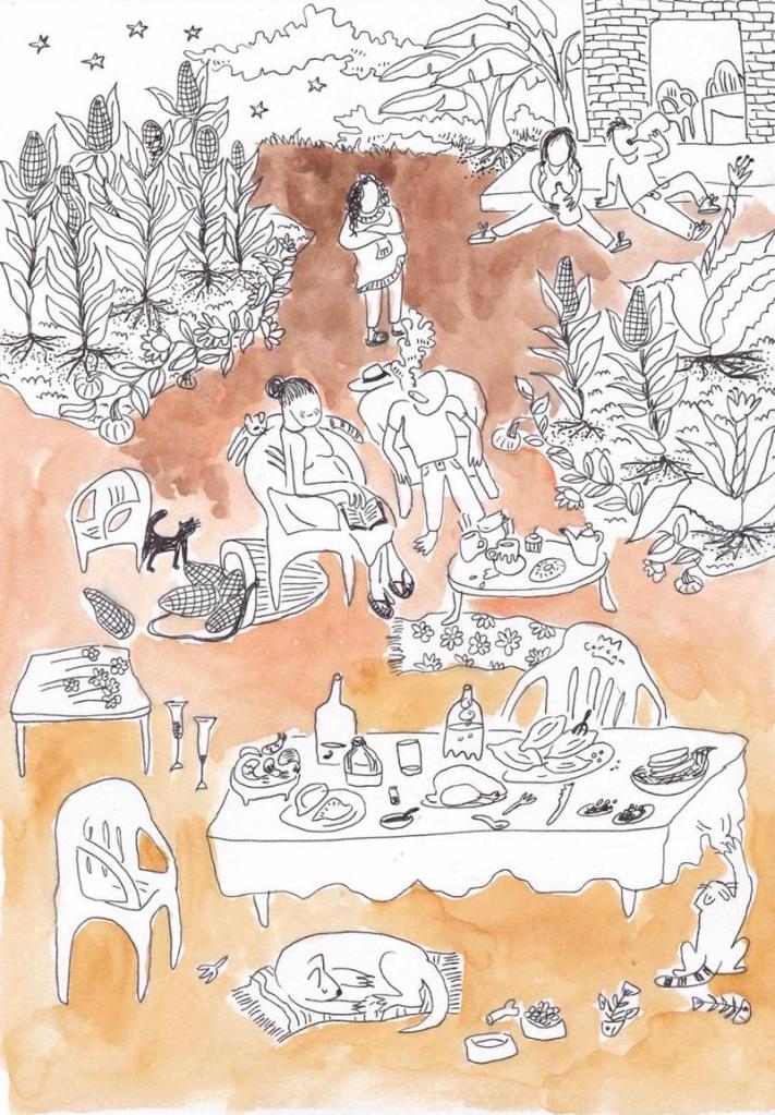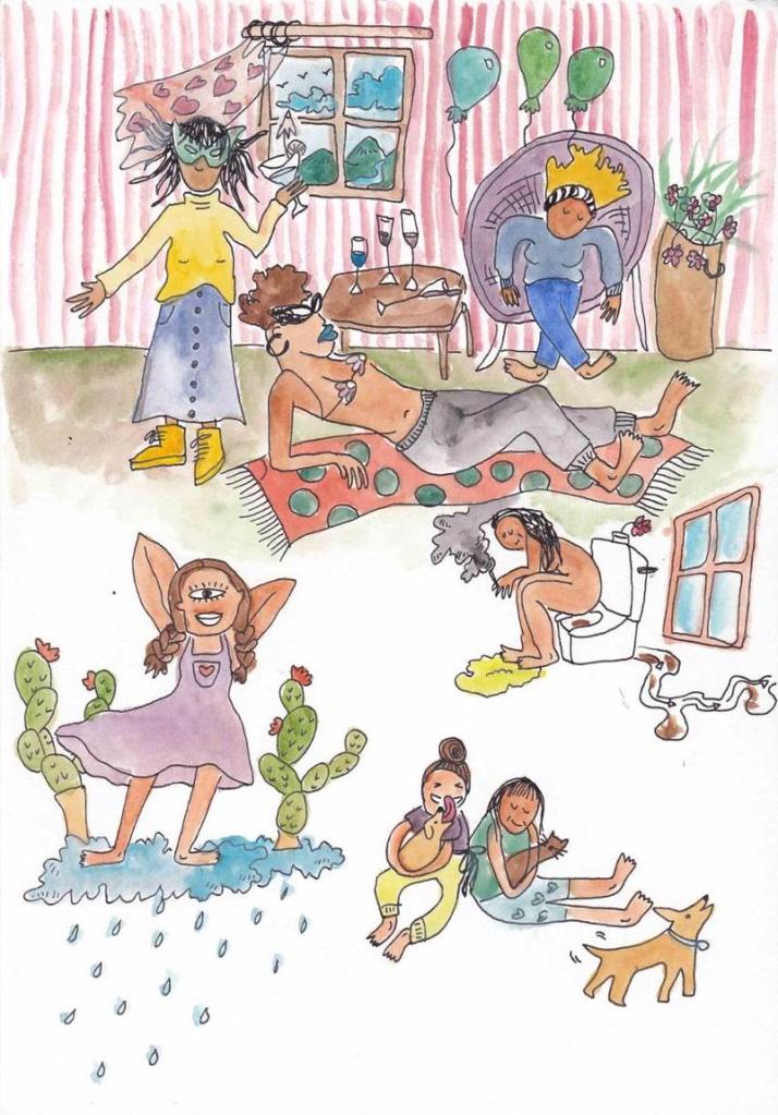 Rosita Merikei es mi alter ego, desde el cual empecé a explorar el dibujo sin pretensiones de banalidades, o cotidianidades de dicho personaje. Poco a poco se fue transformando en un personaje que me acompaña y que explora la cotidianidad, pero de manera reflexiva y crítica, desde posturas a veces feministas, y otras de diferentes temas que fui leyendo durante el proceso de la Maestría.